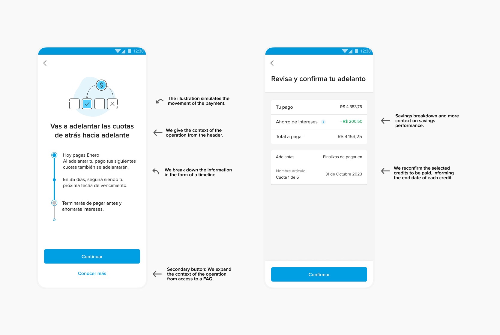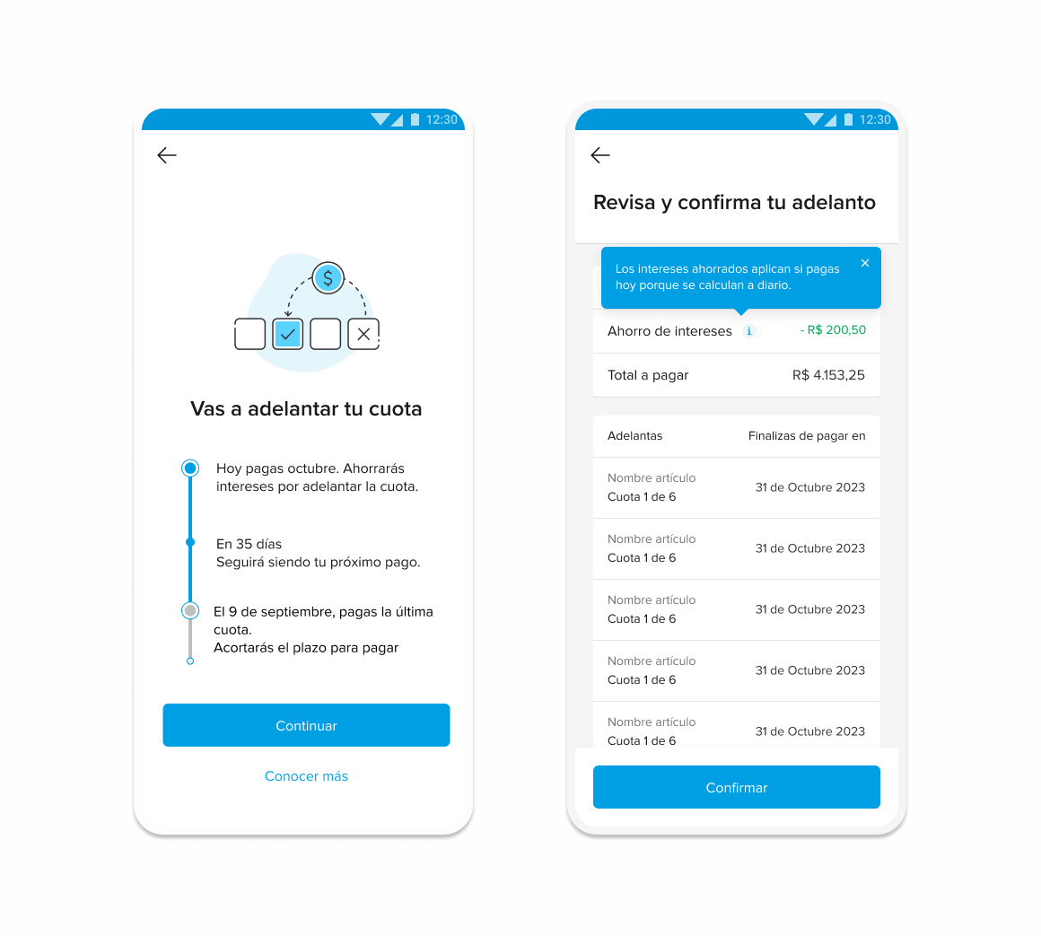 The high‑level objective was to redesign the prepayment flow so that users see, step by step, how paying early changes their installments, and can choose confidently how to proceed. The solution sought to be scalable for both the visual layer and the underlying payment path.
